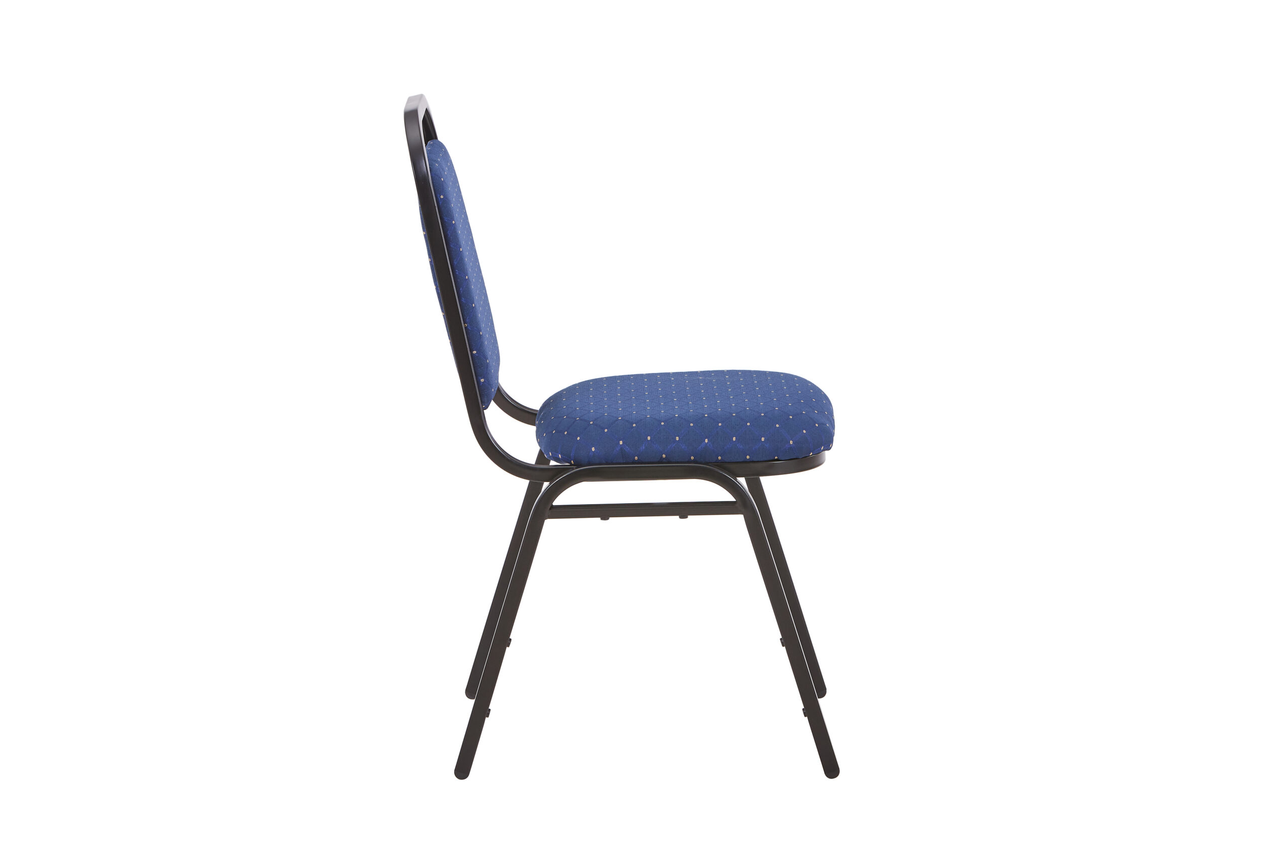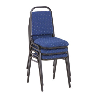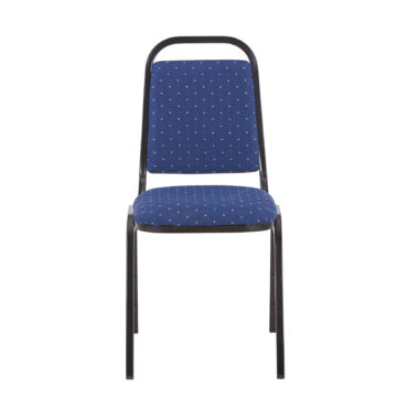 Our Loughborough stacking chair Blue is a lightweight and cost-effective banqueting chair. Suitable for a wide variety of venues and events. Finished in a powder coated black frame, with plastic floor protectors on the feet.