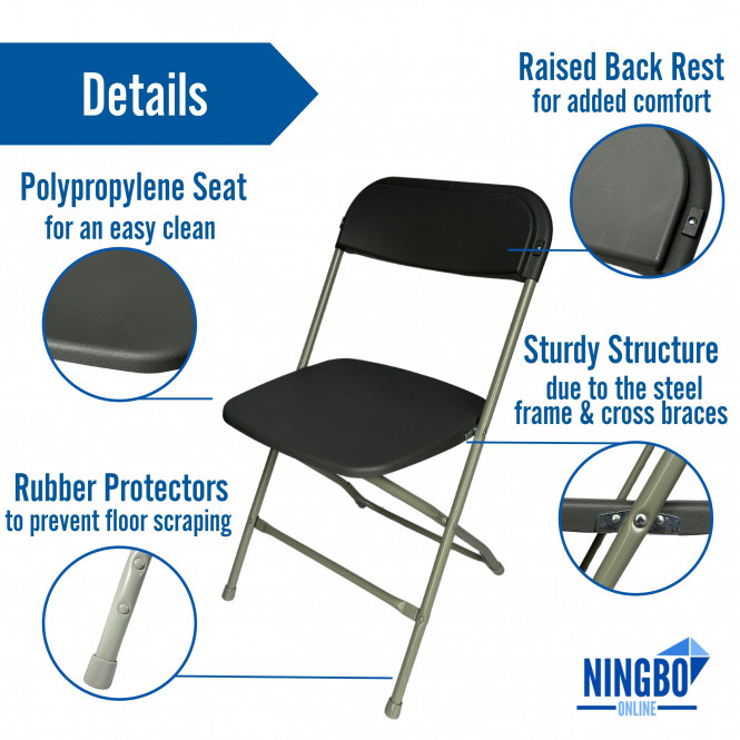 Of all of the Ningbo Furniture folding chair, this plastic Samson grey model is not only one of the most affordable but also one of the most popular sellers. Considering how light it is, it’s certainly very strong and durable making it an ideal choice for a range of venues and events. Frequently used in places like schools, sports halls, village halls and other function halls, the Samson folding chairs are extremely versatile. In addition to folding, grey plastic folding chair can also be stacked horizontally which means they are perfect for those places with limited storage space. Set them up quickly before an event and once it’s over, they can be folded, stacked and returned to storage just as easily and quickly.
