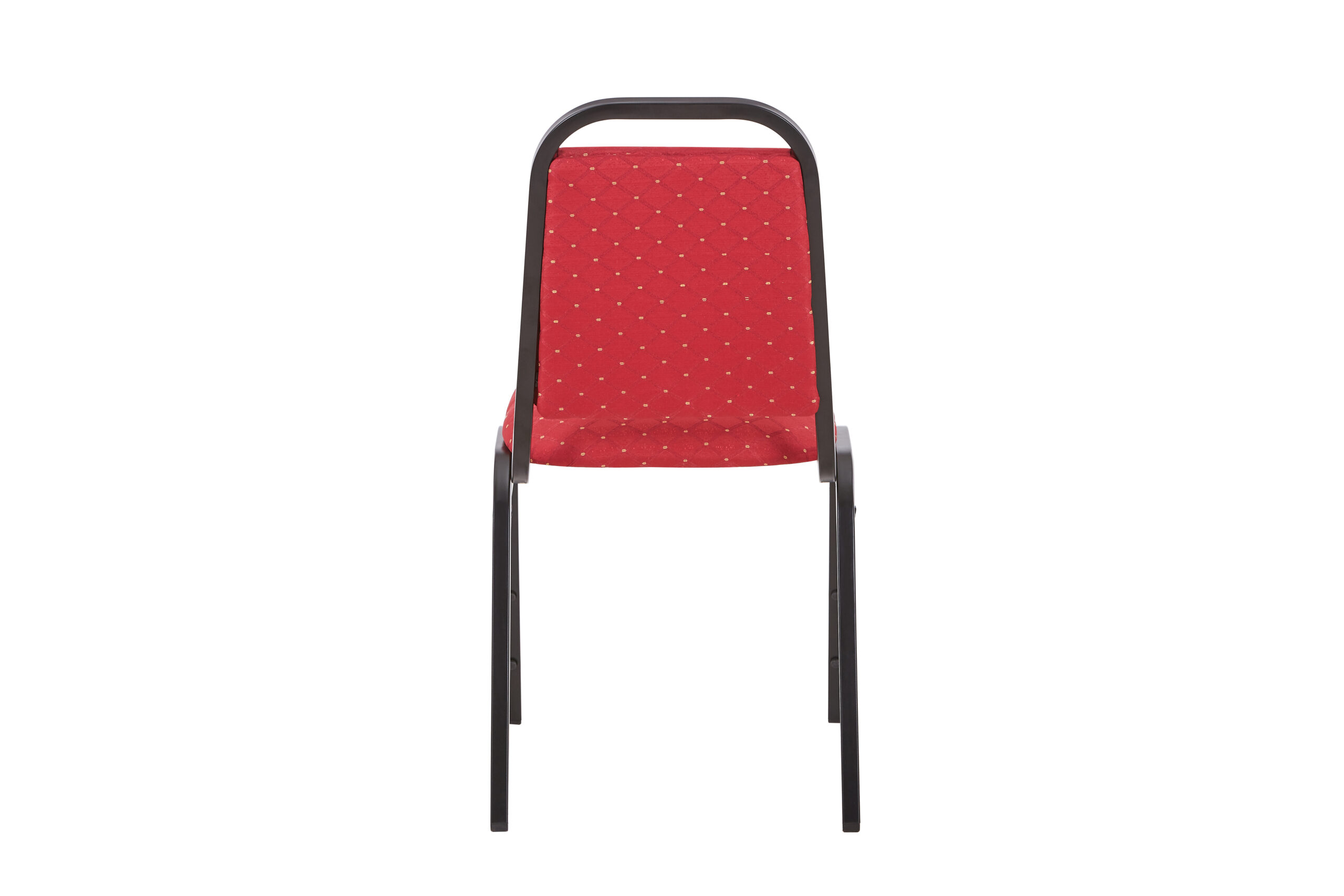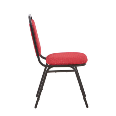 Our Loughborough stacking chair Red is a lightweight and cost-effective banqueting chair. Suitable for a wide variety of venues and events. Finished in a powder coated black frame, with plastic floor protectors on the feet.