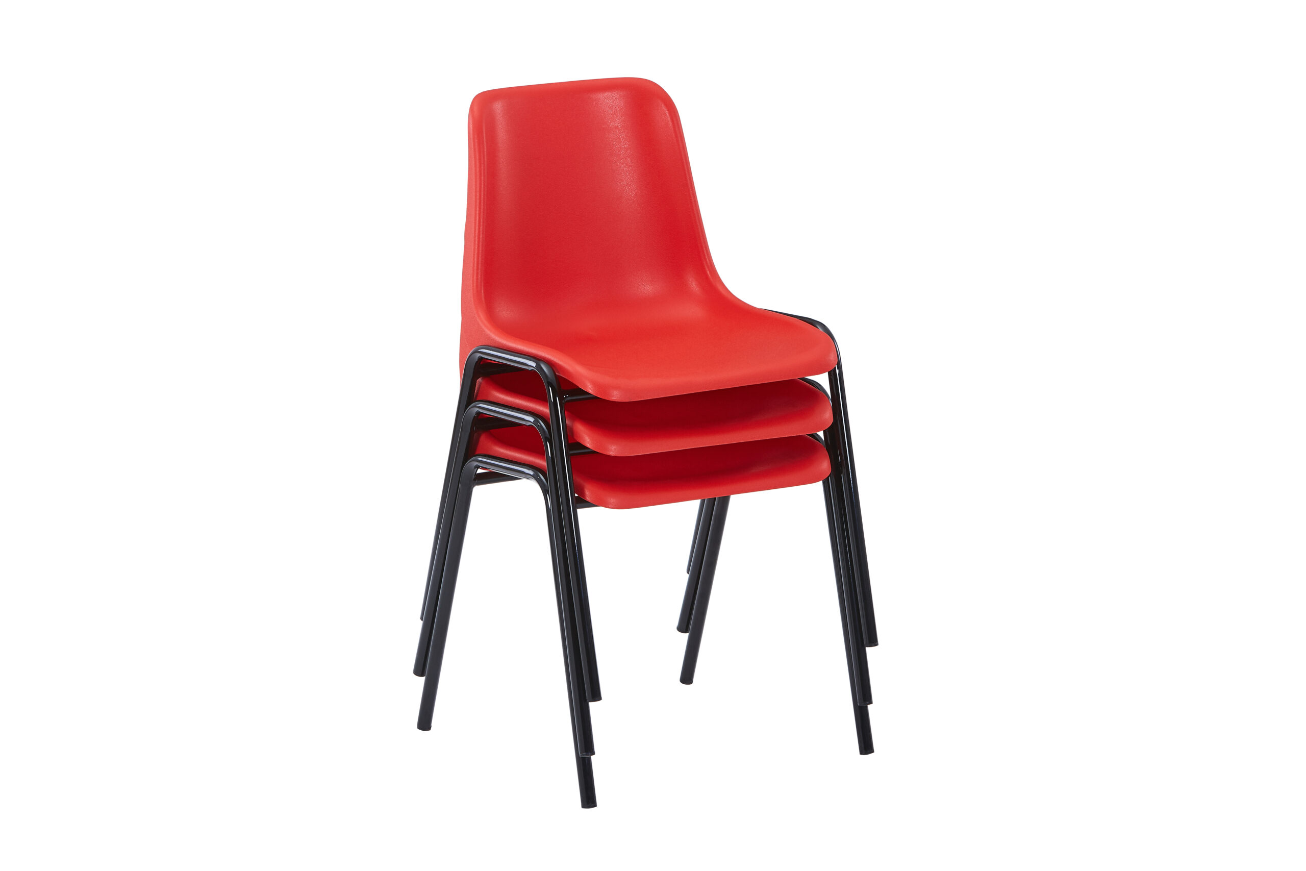 This Red stackable plastic chair is a sturdy, lightweight and convenient stacking chair to use in a whole host of practical settings. This stacking chair comes with Black enamelled finished legs and one-piece comfort moulded Polypropylene Red seat.