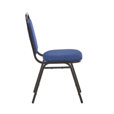 Our Loughborough stacking chair Blue is a lightweight and cost-effective banqueting chair. Suitable for a wide variety of venues and events. Finished in a powder coated black frame, with plastic floor protectors on the feet.