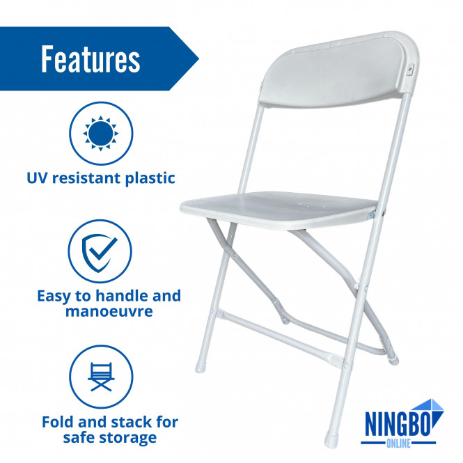 Of all of the Ningbo Furniture folding chairs, this plastic Samson model is not only one of the most affordable but also one of the most popular sellers. Considering how light it is, it’s certainly very strong and durable making it an ideal choice for a range of venues and events. Frequently used in places like schools, sports halls, village halls and other function halls, the Samson folding chairs are extremely versatile. In addition to folding, they can also be stacked horizontally which means they are perfect for those places with limited storage space. Set them up quickly before an event and once it’s over, they can be folded, stacked and returned to storage just as easily and quickly.