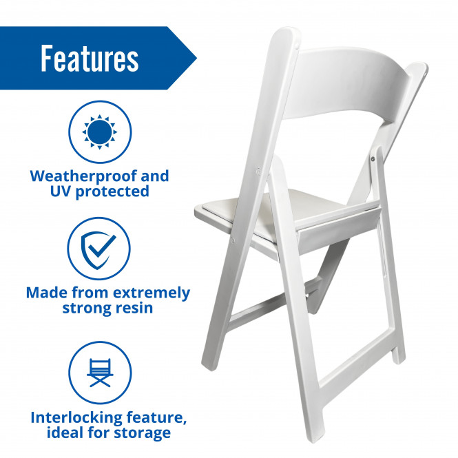 Ningbo’s resin folding chair is very popular for wedding ceremonies and receptions but can be used for a range of events. Always looks new and can be stacked for storage