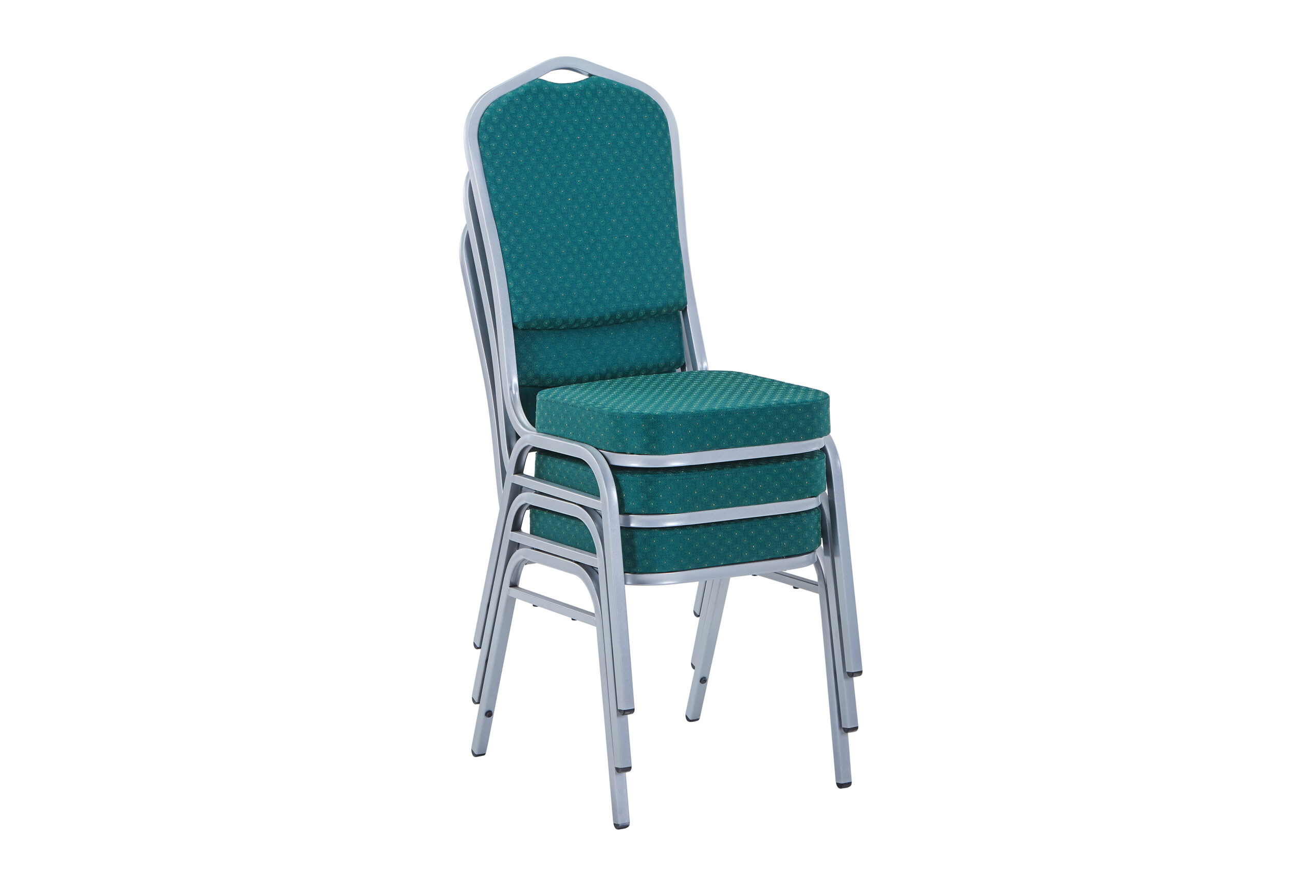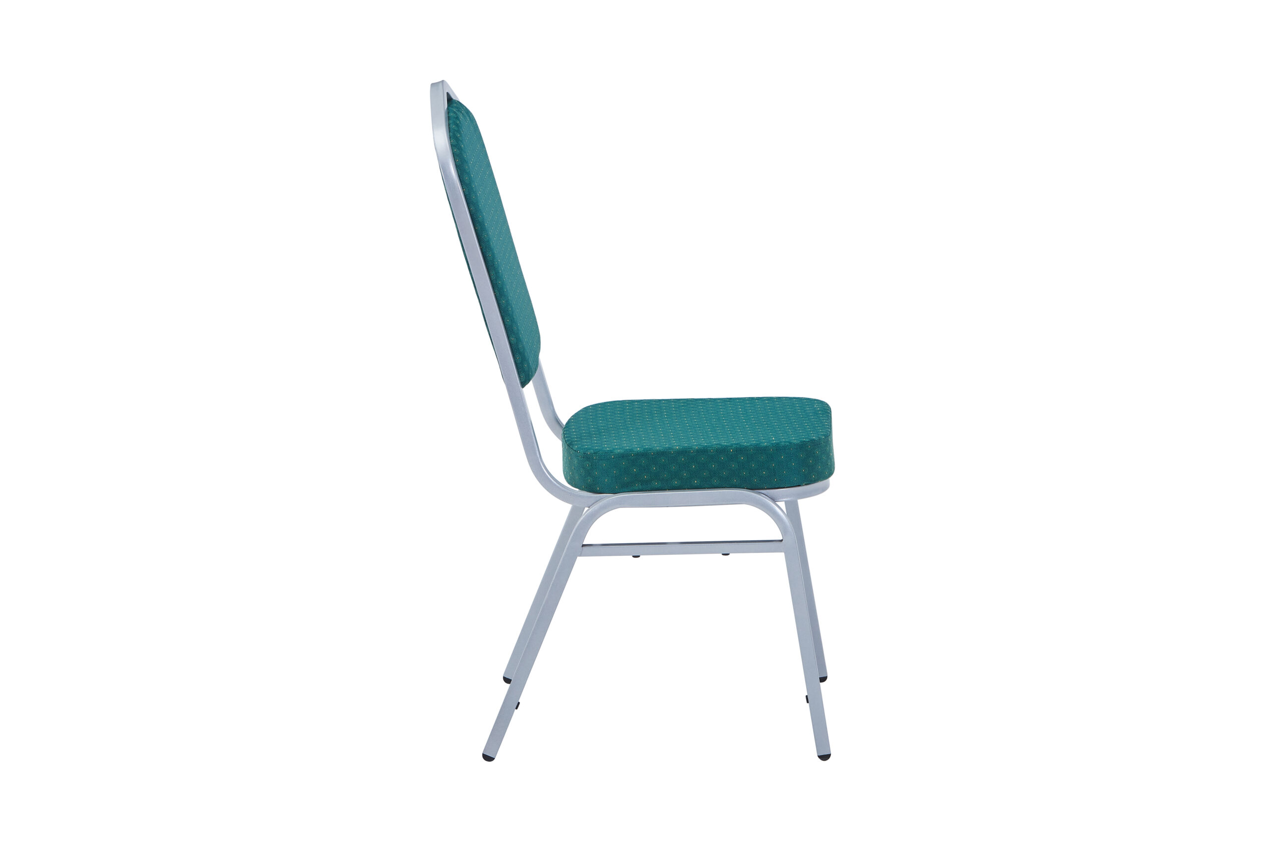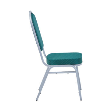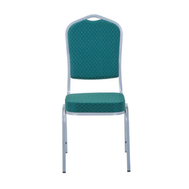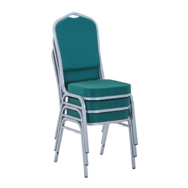 Ningbo’s Emperor banqueting chair green silver is available in aluminium or as is the case with this particular model, in steel. They are extremely attractive looking chairs and are therefore suitable for a huge range of occasions held at a whole host of venues and locations. Steel chair green silver certainly don’t look out of place at big celebrations such as weddings (receptions in particular) and anniversary parties, whether in a hired hall or hotel and with a number of different fabric colours available (red, blue, green, black and gold), colour coordinating with your celebration event is made straightforward. These chairs can be stacked up to 15 high (see features and benefits), which makes them ideal for storing away after your function. If you are looking to compliment your new seats with other furniture, Ningbo also stocks a vast selection of banqueting tables suitable for all kinds of catering functions and other events.