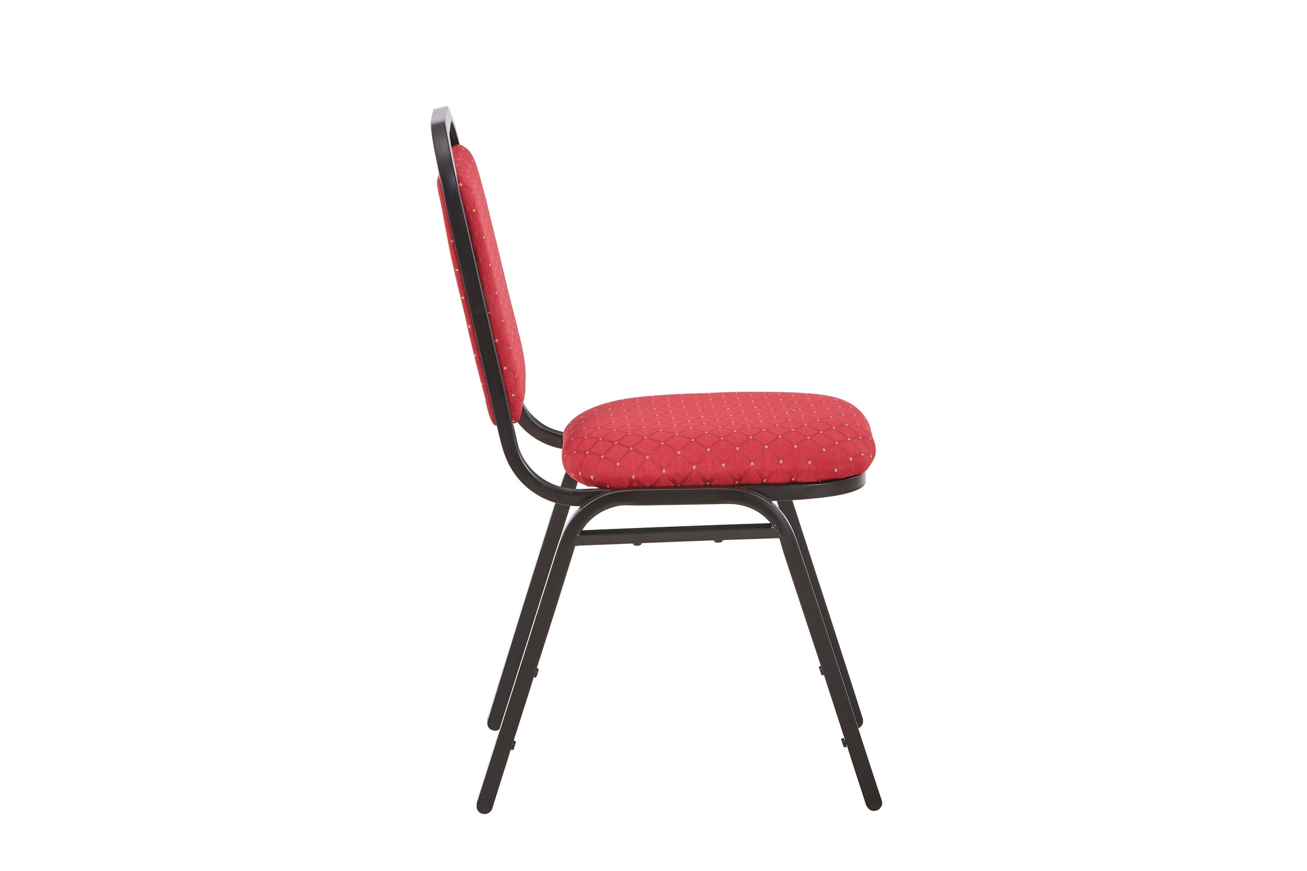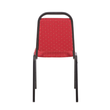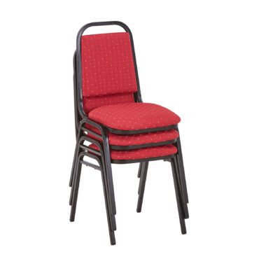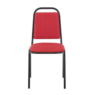 Our Loughborough stacking chair Red is a lightweight and cost-effective banqueting chair. Suitable for a wide variety of venues and events. Finished in a powder coated black frame, with plastic floor protectors on the feet.