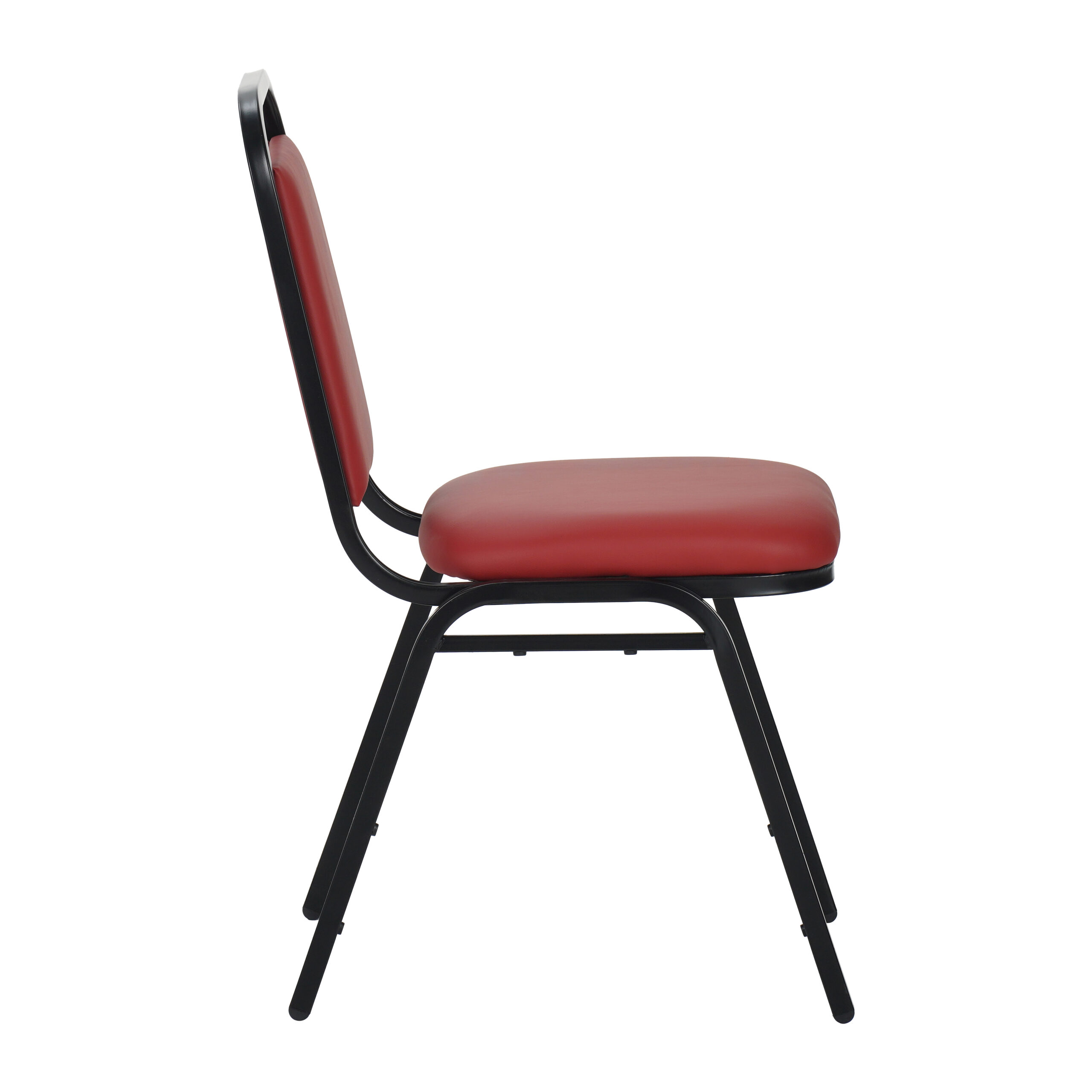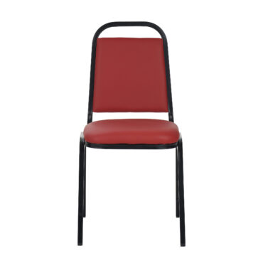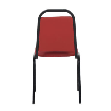 Our Loughborough stacking chair Red PU Vinyl Fabric is a lightweight and cost-effective banqueting chair. Suitable for a wide variety of venues and events. Finished in a powder coated black frame, with plastic floor protectors on the feet.