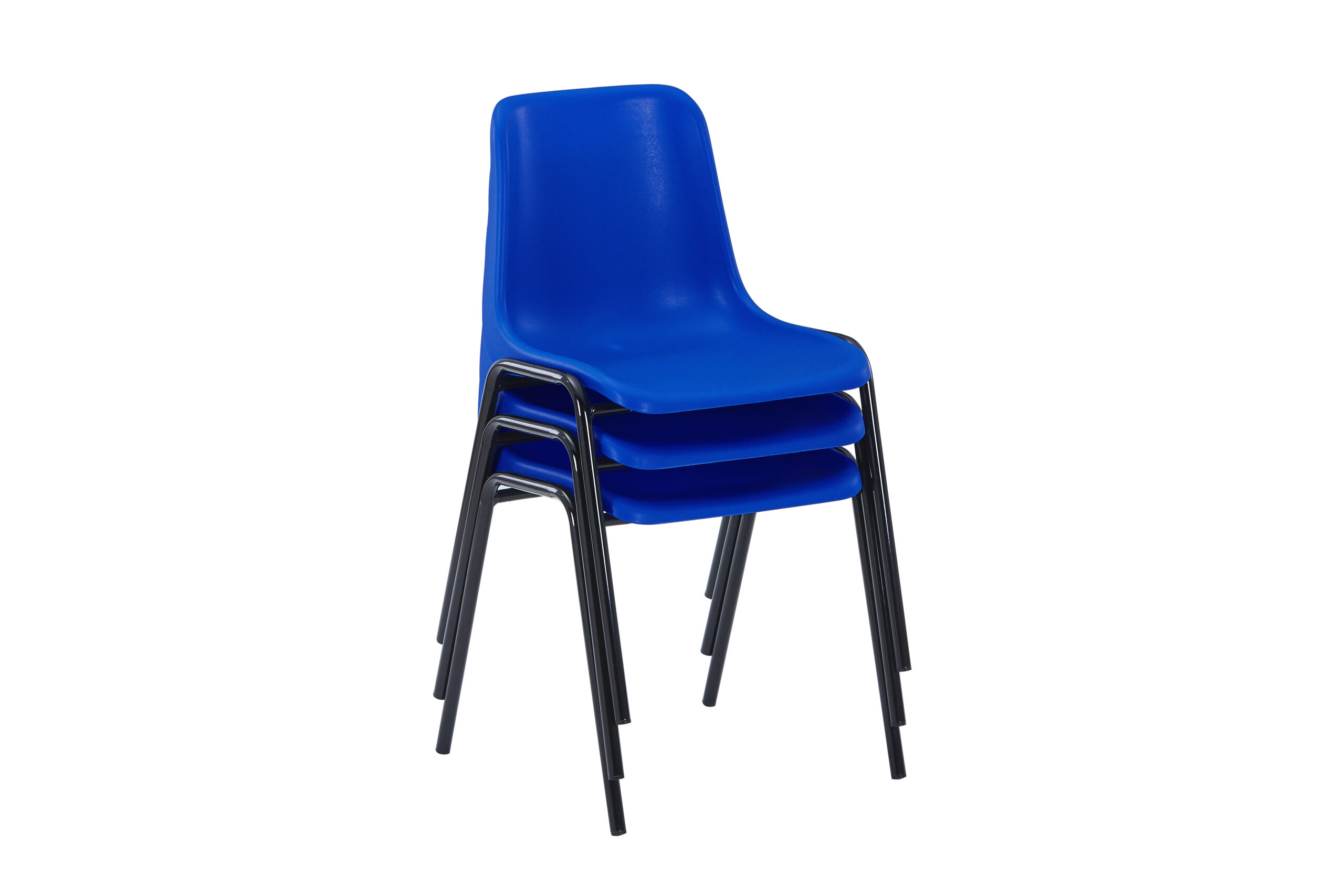 They have a one-piece comfort moulded polypropylene seat, full back and are finished with black enamelled legs.