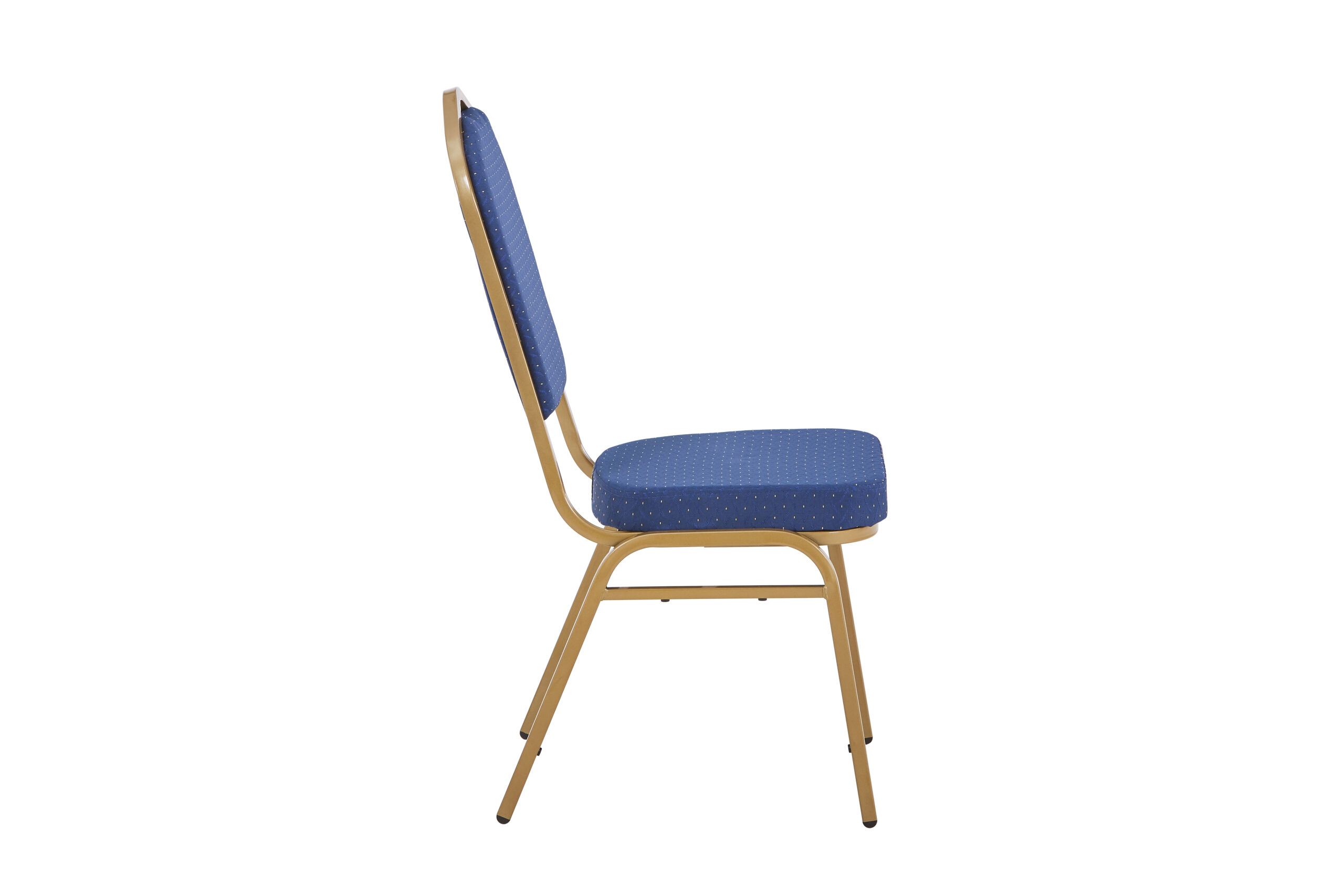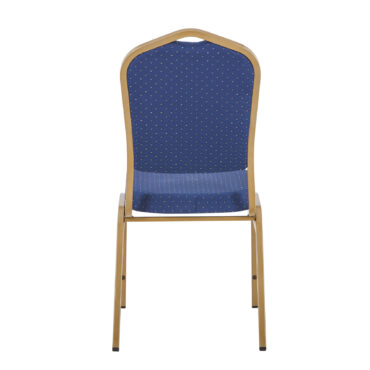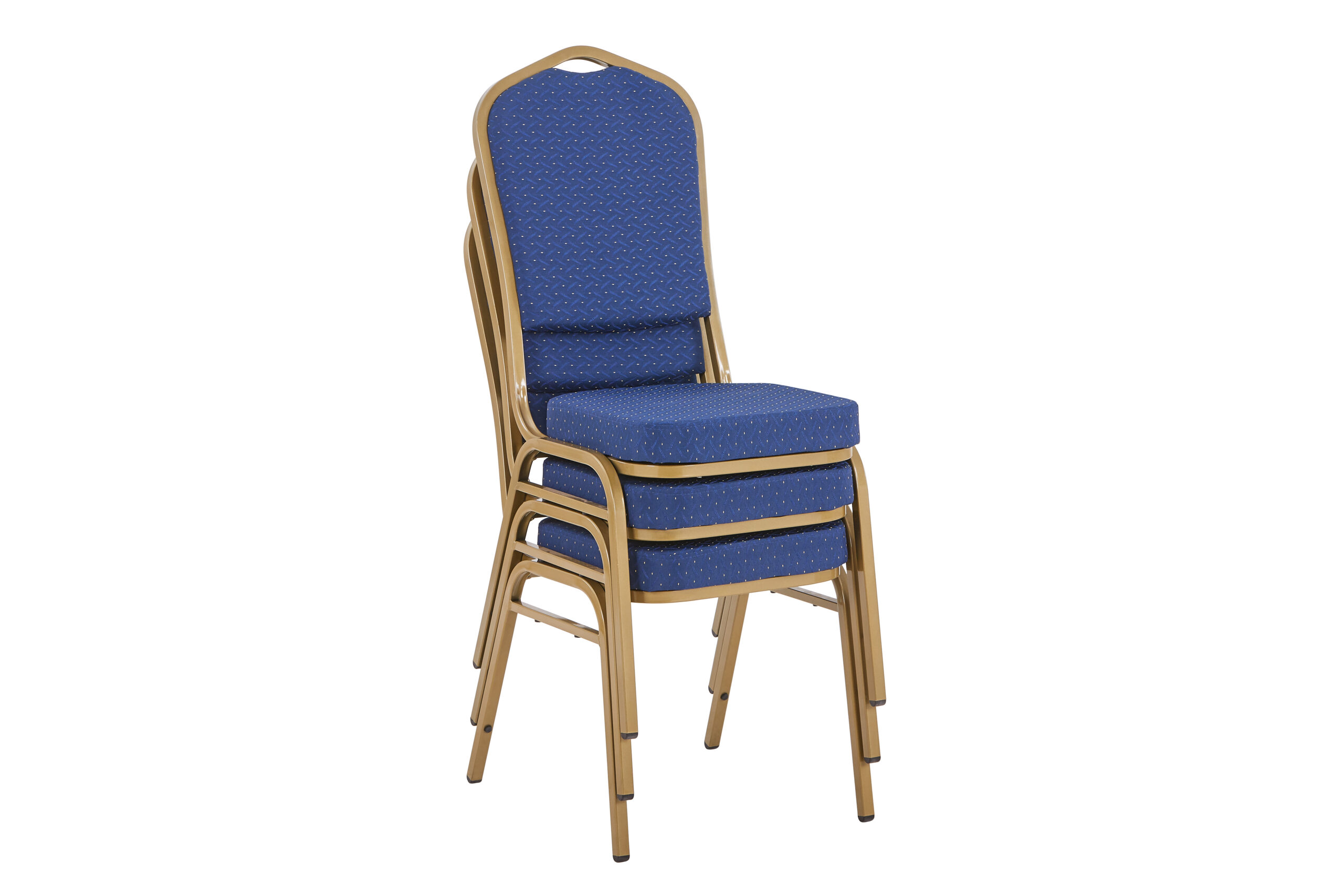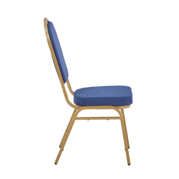 Ningbo’s Emperor banqueting chair are available in aluminium or as is the case with this particular model, in steel. Steel emperor banqueting chair blue are extremely attractive looking chairs and are therefore suitable for a huge range of occasions held at a whole host of venues and locations. They certainly don’t look out of place at big celebrations such as weddings (receptions in particular) and anniversary parties, whether in a hired hall or hotel and with a number of different fabric colours available (red, blue, green, black and gold), colour coordinating with your celebration event is made straightforward. Steel emperor banqueting chair blue can be stacked up to 15 high (see features and benefits), which makes them ideal for storing away after your function. If you are looking to compliment your new seats with other furniture, Ningbo also stocks a vast selection of banqueting tables suitable for all kinds of catering functions and other events.